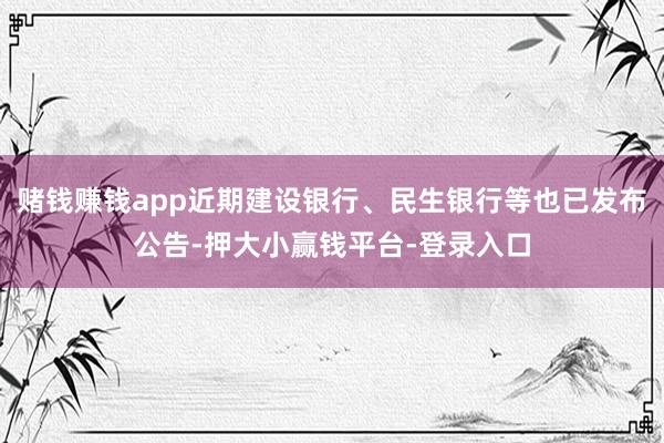 赌钱赚钱app近期建设银行、民生银行等也已发布公告-押大小赢钱平台-登录入口