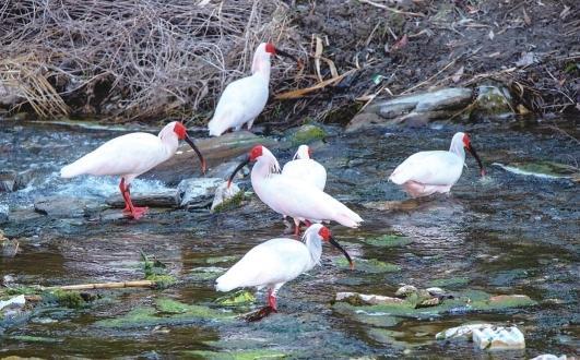 近日,国度一级保护动物朱鹮现身康县窑坪河流域,共不雅测到7只。